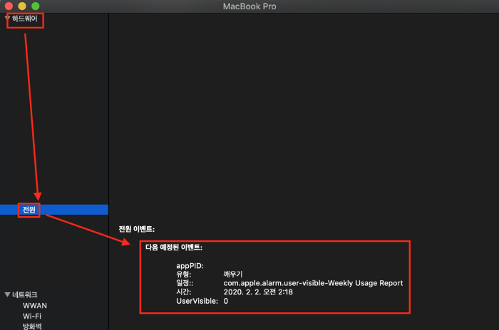 pmset -g sched아까 전원 탭에서 봤던 스케줄이 동일하게 출력 될 것이다.