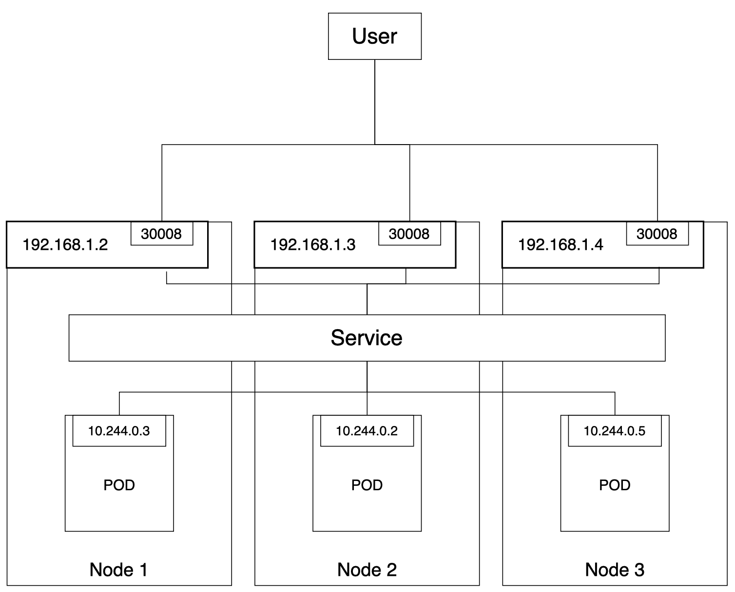 - ClusterIP에 기반하며, 각 Node의 지정된 Port를 통해 외부에서 Service에 접근할 수 있게 한다.